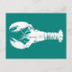 Postcard in a digital sketch of a Lobster in white on a deep turquoise / teal background