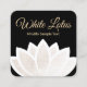 White Lotus Flower Black Square Yoga Business Card