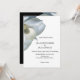 This elegant Black and White Wedding Invitation is designed with a full bloom white magnolia flower on a white background with black text. The front invitation text includes: Together With Their Families, The Bride and Groom's Full Names, Request the Honor of Your Presence at Their Wedding, The Date and Time, The Wedding Location and Address, Reception to Follow. The Reverse side is decorated with a white magnolia flower on a black background with white text. The text includes: RSVP and your contact details. To personalize, simply insert your details into our easy template, replacing the sample text.
