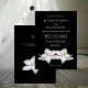 White Magnolia Elegant Floral on Black Wedding Invitation