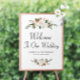 A lovely design with painted watercolor white magnolia flowers and black script. The text and colours on this wedding sign poster can be edited.