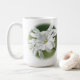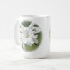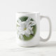 White blossoming magnolia flower against green background. Textured photography. Magnolia is the very old plant which was found in fossils dating back 20 million years. The flower symbolises endurance, eternity, long life, beauty and magnificence. White magnolia flower stands for purity and perfection. Coffee mug