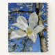 Gorgeous, blooming white magnolia flower, basking in the sun under a clear blue, early spring sky.
