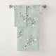 White Magnolia Mint Green Bath Towel Set