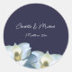 White Magnolia on Navy Elegant Wedding Classic Round Sticker