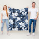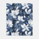 White Magnolia Pattern on midnight background, Fleece Blanket