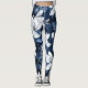 White Magnolia Pattern on midnight background, Leggings