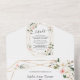 White Magnolia Pink Flowers Gold Wedding All In One Invitation