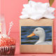 This is a portrait of a white mallard duck that is swimming in a pond at Downing Park in Newburgh, NY. The morning sun added a beautiful blue reflection to the water. This image was taken by Debbie Quick of Debs Creative Images. To see more photography by Debbie, check out her website at: www.debscreativeimages.com