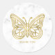 White Marble and Gold Geometric Butterfly Classic Round Sticker