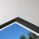 White marble, a frame with a black abstract filigree graphic design on many decor products for a modern upmarket vacation Villa with a matching Guest book.