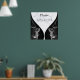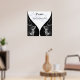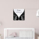White marble a frame with a black abstract graphic and underexposed tulips to personalise guiding your guest to your guest book.
