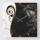 White Marble, Black, Gold Filigree Graphic Square Wall Clock