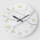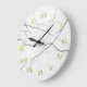 Black veined white marble is depicted on this stunning wall clock. Faux gold Roman numerals accent the face. Perfect with nearly any decor, this will make a great gift for yourself or a loved one.