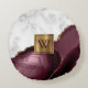 White Marble Gilded Burgundy Agate Monogram Round Cushion