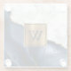 White Marble Gilded Navy Blue Agate Monogram Glass Coaster