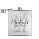 White Marble Modern Script Personalised Groomsmen Hip Flask