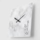 This design features personalised name in grey modern handwriting script font on white marble background.
