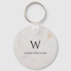 White Marble Monogram Modern Black Name & Initial Key Ring