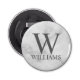 features personalised monogram and name in grey classic serif font style on white marble background.