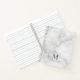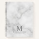 Professional notebook features custom monogram, name and text in grey classic serif font style on white marble background.