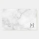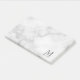 features personalised monogram and name in grey classic serif font style on white marble background.