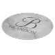 features personalised monogram in grey classic script font style and name in grey classic serif font style on white marble background.