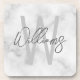 This design features personalised name in grey modern handwriting script font style and monogram in light grey modern sans serif font style as background, on white marble background.