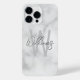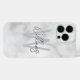 This design features personalised name in grey modern handwriting script font style and monogram in light grey modern sans serif font style as background, on white marble background.