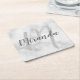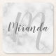 White Marble Script Personalised Monogram and Name Square Paper Coaster