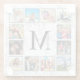 Create your own personalised 12 photo collage glass coaster with your custom images and monogram on a stylish elegant white marble background.