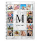 Create your own personalized 12 photo collage notebook with your custom images, monogram and name on a stylish elegant white marble background.