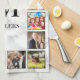 Create your own personalized 16 photo collage kitchen towel with your custom images, monogram and name on a stylish elegant white marble background.