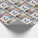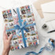 Create your own personalised 12 photo collage metal wrapping paper with your custom images and monogram on a stylish elegant white marble background.