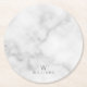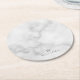 White Marble with Personalised Monogram and Name Round Paper Coaster