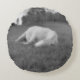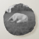 White Mare Resting in Field on a Horse Ranch Round Cushion