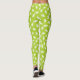 White Marigold Flower Silhouettes on Leaf Green Leggings