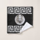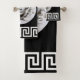 White Medusa Greek Key on Black Designer Bath Towel Set