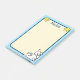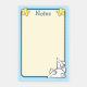 Cute notes with two adorable white mice in the bottom right corner. One is laying down and the other is sitting up. The writing area is a pale pastel yellow with the word notes in blue lettering at the top. Either side of the word notes are two yellow stars with happy faces. The background colour is a light baby blue with tiny white polka dots.