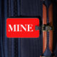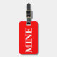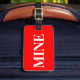Luggage tag with name and address with a white "MINE" on a red background colour. Personalise with your name and address information using the easy templates.
