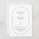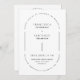This elegant modern minimalist wedding invitation features a stylish arch layout with circular text reading "kindly join us to celebrate the wedding of" elegantly placed at the top, adding a romantic and formal touch. The sophisticated serif font highlights the couple’s names with a clean and refined look. The back of the card includes space for a personal photo of the happy couple and a customisable QR code for guests to RSVP and find more details.