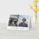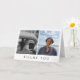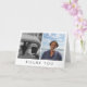 Minimalist folded thank you card for a memorial service. Personalise with two photos of your loved one on the cover, perhaps one from their childhood and one recent photo, above "thank you" in an elegant font. Inside you can use the pre-written thank you message or write your own. Add your names and the name of your loved one too. Thank your friends and acquaintances for their sympathy with this folded thank you card personalised with two photos of your loved one.