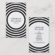 This minimalist vertical business card features a geometric design of round lines in black against a white background. It is ideal for various professions like Consultants, Stylists, Jewellery Designers, Bloggers, Event Planners, Wedding Coordinators etc; anyone that want a way to let the people they meet in real life know how to find them and their work/portfolio online and on social media.