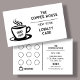 Customisable white minimalist loyalty card for cafes and coffee shops, featuring a freshly brewed cup of coffee with " Thanks A'Latte ", business details with an area to stamp the card with every purchase.