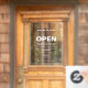 Simple elegant opening hours windows cling with a company name. Edit it easily with your opening times, your business name and a phone number. If you need to make further changes to the template, click on "Edit using design tool".