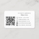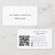 White background colour. Black text and icons. Personalise and add your name, title and contact information. Add your website url/link to the Qr code. With Facebook and Instagram icons.