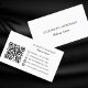 White background colour. Black text and icons. Personalise and add your name, title and contact information. Add your website url/link to the Qr code. With Facebook and Instagram icons.