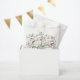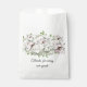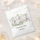 An elegant bouquet of white and soft pink flowers of various types accent this favour bag. Customise by adding names and date or message as desired. Your guests will love these stylish favours.