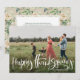 Send thanksgiving greetings to family and friends with this photo Happy Thanksgiving flat card. It features white modern calligraphy overlay with a fall floral pattern. Personalise by adding photos, names, return address and messages. This floral photo thanksgiving card is available in other cards.