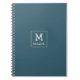 White Monogram and Name on Blue Rounded Square Notebook